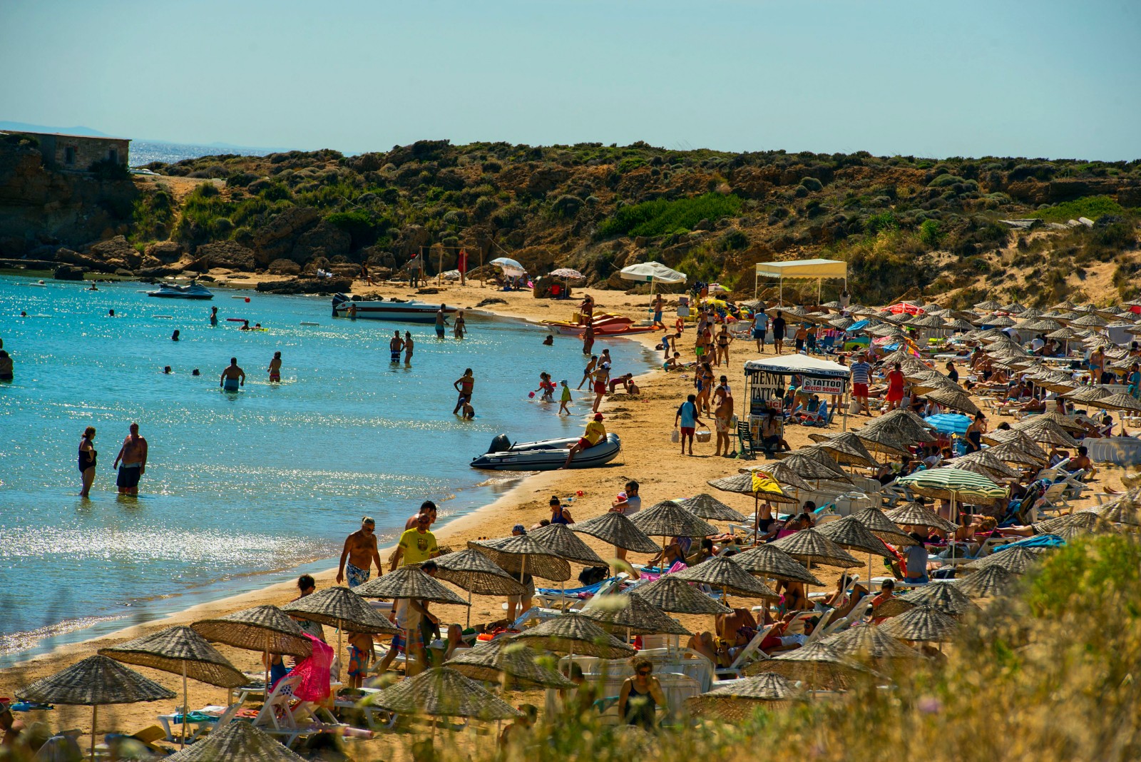 Bozcaada Yat Limanı ve kale arkası denilen bölge, Bozcaada’nın merkezinde denize girilebilecek yerler arasında bulunmaktadır. Özellikle merkezde yat limanı çevresinde denize girmeyi tercih etmeniz durumunda; eğer karadan fazla açılırsanız adaya yanaşmakta veya adadan uzaklaşmakta olan feribotlara ve elbette teknelere dikkat etmeyi sakın unutmayın. Havanın lodos olduğu günlerde kale arkasını, havanın poyraz olduğu günlerde ise yat limanını tercih edebilirsiniz.